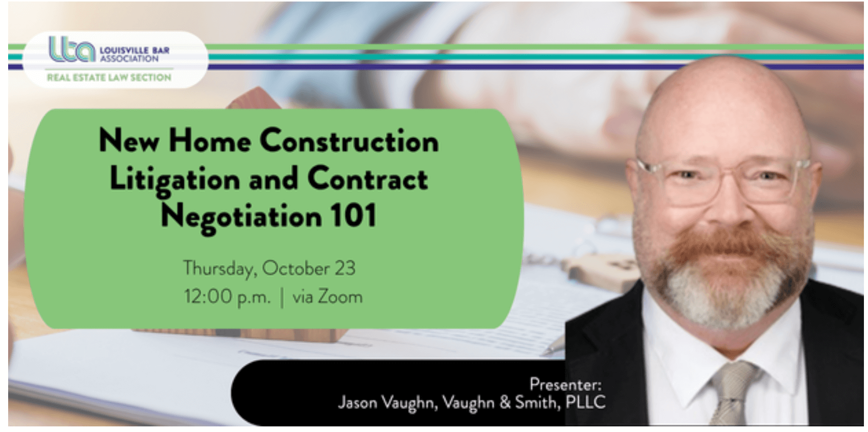 Jason Vaughn Teaches Seminar for the Louisville Bar Associaion on New Home Construction October 18, 2025 | by [...]